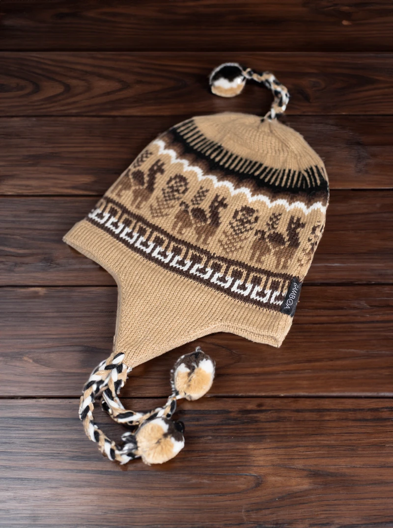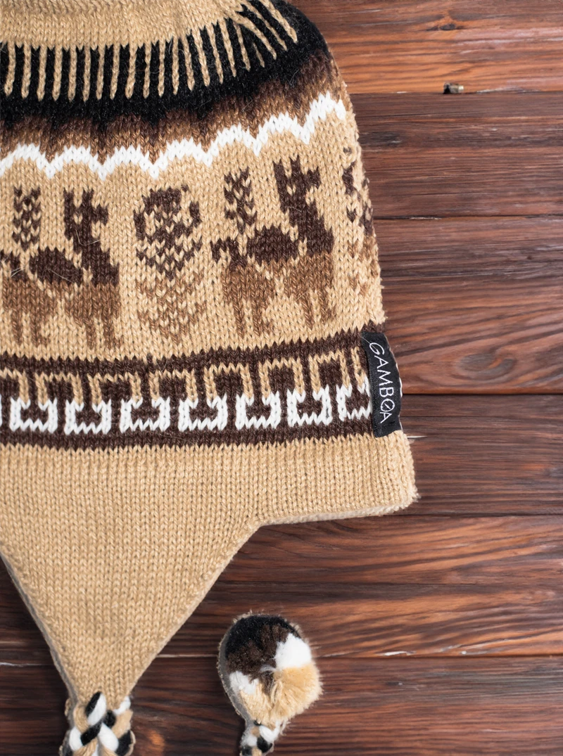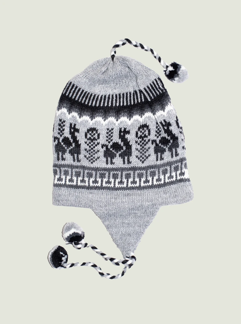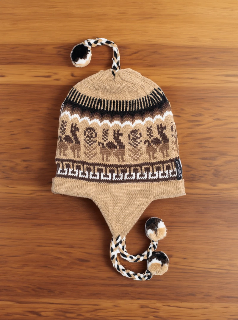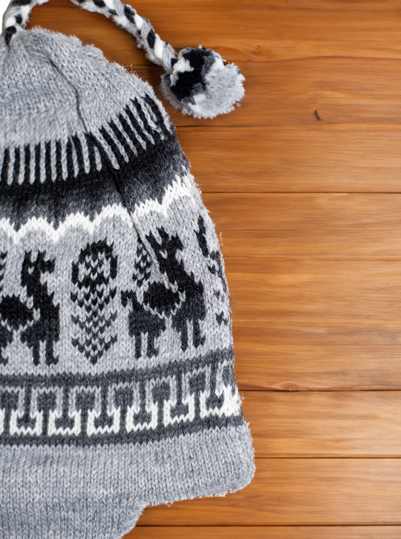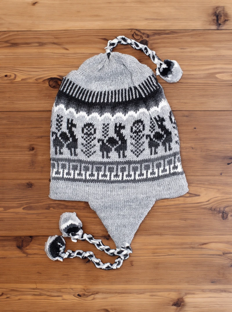 Lluchu made of 100% alpaca wool by Bolivian artisans. It displays a fine design with little llama figures all around. It is a warm and casual accessory, perfect for any outdoor activity during cold winter seasons. It’s long braids add the original, fun and youthful touch.Material: Wool Blend