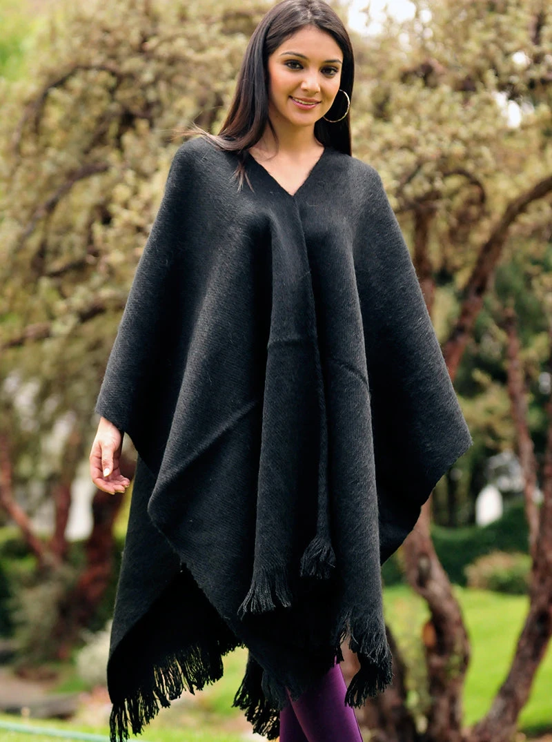 Elegant Open Poncho. Warm, casual and versatile. It is ideal for any outdoor activity in cold weather and adds a touch of elegance when you wear it. Material: Wool Blend