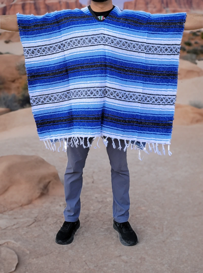Genuine Mexican Poncho for Men manufactured in Mexico. The Mexican Poncho is an iconic and versatile garment that has been part of Mexican culture and tradition for centuries. The colorful and artisanal designs of GAMBOA adult ponchos make them a garment that not only expresses Mexican identity but also serves multiple practical uses throughout the year! Â