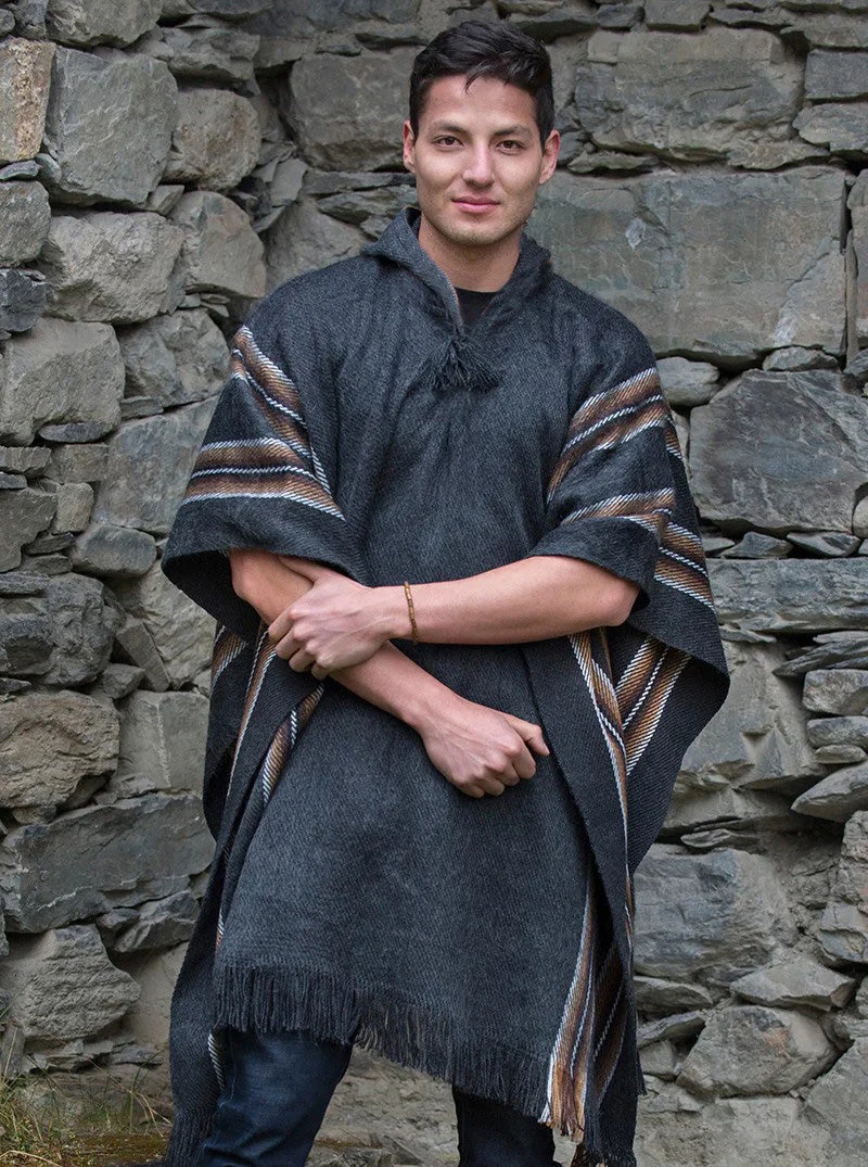 Genuine alpaca poncho: Alpaca wool is hypoallergenic, light and warm. Its fibers contain microscopic air bags that make the garments light and delicate while acting as excellent insulators.