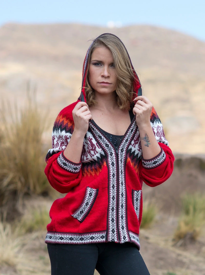 Note: Since this product is is handmade, it may present slight variations from the pictures. Description: Sweater made by Bolivian artisans, with zipper and hood. It displays a casual design with andean and llamas designs. This is a versatile garment. Ideal for cold winter seasons.